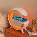 Wireless Charging Atmosphere Lamp with Bluetooth Speaker FM Radio 6 GB Music sync Lighting Mode for Bedroom Office Birthday Gift for Women Men Girls Boys Wireless Charging Atmosphere Light Newly upgraded G-shaped design. The lamp is not only an atmosphere light, Bluetooth speaker, music, sleep light, atmosphere light, bedside light, glare effect, Bluetooth audio, clock, alarm clock and other functions. You can use this great light while working, studying, reading and sleeping.
