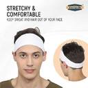 Tough Headwear Wicking Sweat Absorbent Polyester Sports Headband for Men & Women Head Band (White)