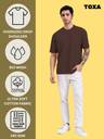 TOXA Men Solid Round Neck Pure Cotton Brown T-Shirt