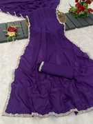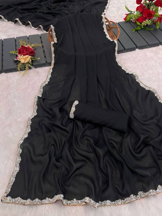MOTILACE01-Gerogette Simmer Fabric Full Solid\ Plain With Small Moti Lace Side Border New Trending Saree