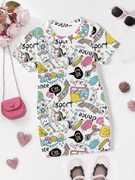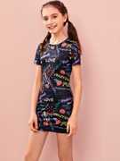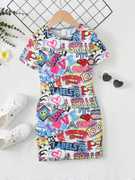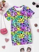 Toxicfashion Girls Midi/Knee Length Casual Dress (Multicolor, Short Sleeve)