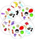 FUN GAME: Fun symbols and pictures cover every card in a deck. Each card has exactly one matching symbol or picture in common with the other cards in the deck.