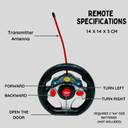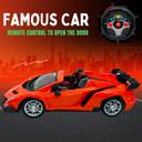 STEERING CAR WITH OPENABLE DOOR AND REMOTE CONTROL: Steering Car doors open and close in style and can be controlled remotely., SPORTY DESIGN AND BRIGHT COLOURS: The sporty design with open head vehicle is available in Cherry Red or Pulpy Orange (colours vary depending on availability)., LED HEADLIGHT: Its dazzling led headlamps add to its allure., GREAT SPEED FOR RACING: Your youngster will enjoy playing racing games with their friends with this car, and its high speed will assist them in driving the car quickly., Ergonomic Remote Control with Steering Shape The remote control is shaped like a steering wheel for your children. Its form allows your child to experience driving a genuine car. Also, the form and size of the buttons,