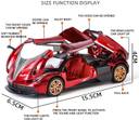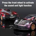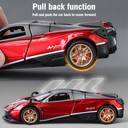 Rev up the excitement with the Toybot 1:32 Scale Die-Cast Pagani Sports Car! This finely detailed model is a must-have for both young car enthusiasts and avid collectors. Crafted from premium alloy metal, this pullback toy car promises hours of interactive fun and imaginative play. The Toybot Pagani boasts a striking orange finish that perfectly embodies speed and luxury. But it’s not just about its sleek appearance—this car is loaded with realistic features that make it truly come alive. Both the front and rear hoods open to reveal intricate details, and the scissor doors swing upwards just like the real thing, offering a glimpse into the meticulously crafted interior. Kids can easily maneuver the car, making playtime more interactive. The functional headlights and rear lights enhance the realism, while pressing the Bonnet activates thrilling sound and light effects, capturing the excitement of driving a supercar. Equipped with a smooth pullback function, this car zooms forward with just a pull and release, adding to the fun factor. Whether for display or play, the die-cast Pagani makes a fantastic addition to any collection. Perfect for birthdays, holidays, or any special occasion, this toy car delivers a unique blend of fun, learning, and style, making it an unforgettable gift for any car lover.