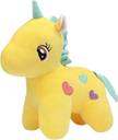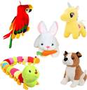 Toyhaven Exclusive combo of 5 adorable and lovely soft toys for kids and special occasions/ BULLDOG, CATERPILLAR, RABBIT, UNICORN and MUSICAL PARROT/ special stuffed toys for gifting and decoration - 25 cm (White, Red, Yellow)