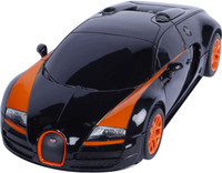 This toy car is a licensed 1:24 scale model of Bugatti Veyron 16.4 Grand Sport Vitesse, and looks almost like its original counterpart, down to its logo.
