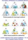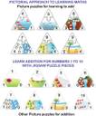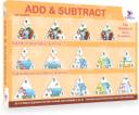 This Toykraft Add and Subtract learning aid provides a pictorial approach to learning these Maths skills to children. The concept is taught through self-correcting picture puzzles. A storyline of increasing or decreasing is shown for each number representing addition and subtraction. The puzzles provide structured learning towards the basic concepts of addition and subtraction through picture sequences in time. Using this illustrated approach, the memorization of concepts that relate to addition and subtraction is gained through this Toykraft 35 pair jigsaw puzzle set. That Addition and Subtraction are two sides of the same coin, is brought home on a practical hands-on learning platform in these educational jigsaw puzzles. Also the concept of Zero is driven home to the child in a vivid manner. Children can be made to learn initially about addition through the self-correcting jigsaw puzzle examples in the shapes of triangles. These are the ones where the jigsaws fit at the top to complete the triangle. This can be followed up by the Subtraction examples, wherein the solution piece fits on the side to complete the triangle. Addition and Subtraction is a 3 stage learning process in this Toykraft learning aid Firstly, it is auto-learning when the child solves each triangle picture using the appropriate self-correcting jigsaw puzzle pieces. Later, the child can count and select the correct number on its own. Next, the child can add or subtract without counting and can insert the desired piece directly. Finally the child can be asked to solve the puzzles randomly and not in the ascending sequence as done earlier. Besides the pictorial representation, examples can also be solved using only the numbered pieces and the "plus" "minus" and "equal" notations pieces which are also included in this Toykraft set These are equivalent to solving the same as exercises in a Math book. One has the option of also creating multiple additions and subtraction examples in this compilation.