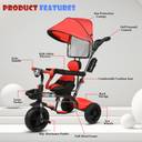 Toys R Us Avigo Tricycle with Canopy/Plug N Play Kids/Baby Tricycle with Parental Control, Cushion seat and Safety Guard Rail for Boys/Girls / Carrying Capacity Upto 30kgs Tricycle (Red)