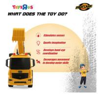 Keep your little one entertained while also developing their skills with the Toys R Us Fast Lane Excavator. It is completely safe for children as this excavator toy is made from high-quality, robust, and non-toxic material and has smooth edges. With its free rotation operator trolley, crane hand, adjustable handle, and EVA tyres, this excavator toy gives an authentic feel. Moreover, you can separately purchase two AAA batteries and insert them into this excavator toy to operate it with sound and light.
