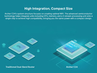 Archer C24's system structure focuses on creating optimal WiFi. The advanced semiconductor technology helps integrate units including CPU, memory, and a 3-stream processing unit onto a single chip to achieve high compatibility, bringing you the same power with a compact design.
