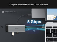 You can enhance your connectivity with the TP-Link UH7020C USB Type-C Adapter, which features up to seven ports for optimal efficiency and flexibility. This versatile USB adapter enables you to link to an external monitor via the 4K HDMI port, thereby providing vibrant, crisp visuals at up to 60 Hz. And, it facilitates rapid data transfers from SD and microSD cards, reaching speeds of up to 200 MB/s.