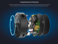 Equipped with the latest safety features, such as a large double air cooled fin and high-quality IC, this USB charger protects your devices from over-voltage, over current, over heating, short circuits, power overload, electrostatic discharge and power surge.
