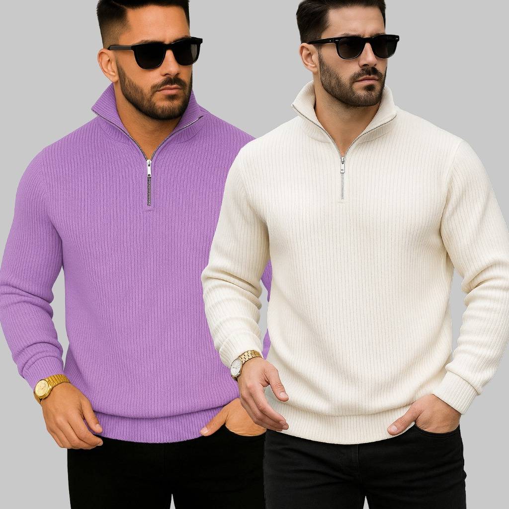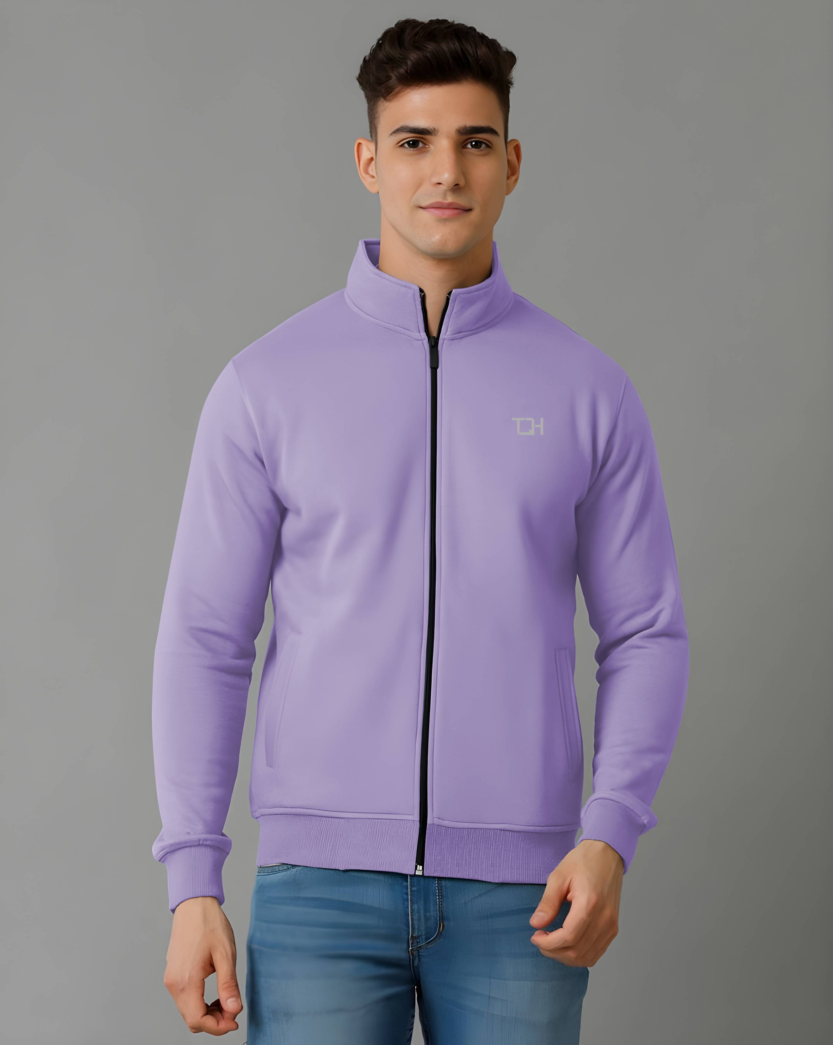 TQH Men Full Sleeve High Neck Zippered Solid Purple Sweatshirt
