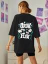 TQH Printed, Typography Women Round Neck Black T-Shirt
