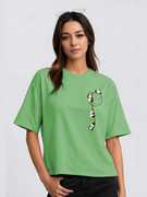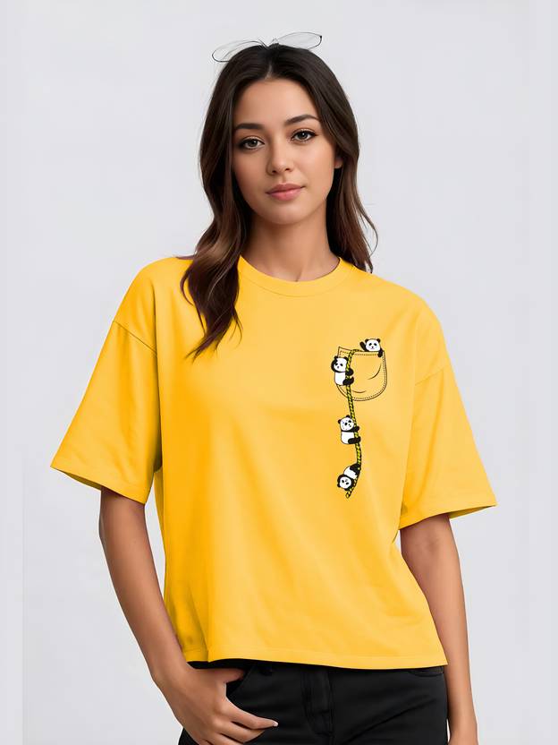 Women Printed Round Neck Cotton Blend Yellow T-Shirt