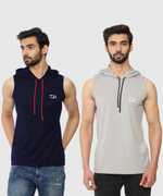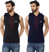 TQH Solid Men Hooded Neck Grey T-Shirt