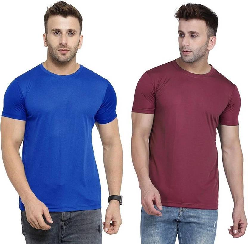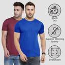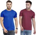TQH Solid Men Round Neck Blue, Maroon T-Shirt