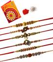 6 Rakhi, 1 Roli Chawal Set, 1 Greeting Card