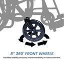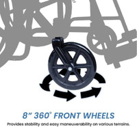 Sporting robust and durable front wheels, this wheelchair ensures stability and seamless manoeuvrability. These 360-degree wheels allow smooth navigation across a variety of terrains, from tiled floors to uneven outdoor surfaces. Whether moving around the house, traversing hospital hallways, or navigating outdoor paths, this wheelchair's stable front wheels ensure consistent balance and ease of movement.