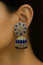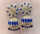 Traditional Blue Stone Studded Silver Plated Jhumka Earrings for Women