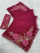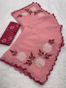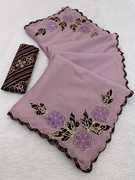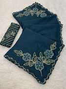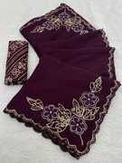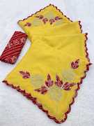 Embroidered Bollywood Chiffon Saree (Yellow)