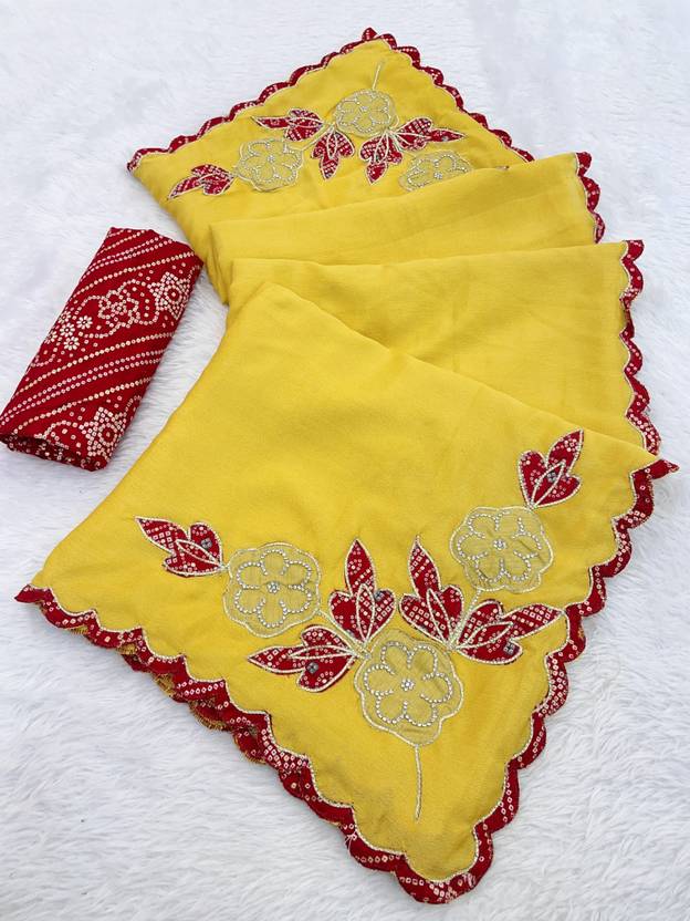 Tradivibe Embroidered Bollywood Chiffon Saree (Yellow)