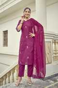 A good quality ethnic set for women. It will give them a classic and trendy look. It is light in weight and will be soft against your skin.This is made as per the latest trends to keep you in sync with high fashion and with wedding and other occasion, it will keep you comfortable all day long. It is capable of making you look gorgeous. Wear it and put your step in the world of fashion. It looks stunning every time you match it with accessories. The lovely design forms a substantial feature of this wear.