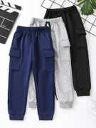 Give your child's wardrobe a track-to-lounge upgrade with Trampoline's Pack of 3 Knitted Cargo Pants. Made from breathable cotton blend, these unisex joggers feature roomy side and flap pockets for essentials, along with ribbed ankles and a stretchy drawstring waistband. Ideal for school, weekends, or daily wear, their dark solid colors are easy to style and practical for all adventures - indoors or out!