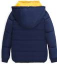 Add a warm, cosy and comfortable colorblock puffed jacket for winters to your kids winter wear collection. This jacket comes with a hood which ensures that your child stays warm any time of the day and its regular fit is designed for maximum comfort. Perfect for winter wear, the easy care fabric makes it a no fuss option for little kids.