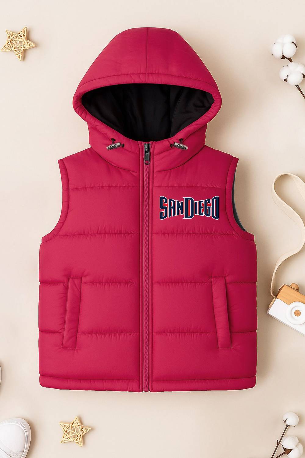 This kids sleeveless solid puffer jacket is a stylish and functional winter essential. Made from durable polyester with lightweight padded insulation, it provides cozy warmth without restricting movement. The bold colorblock design adds a trendy touch, while the smooth zipper closure ensures easy wear. Two functional front pockets offer convenience for keeping hands warm or storing small items. Perfect for layering over sweaters or tops, making it ideal for school, play, or outings.