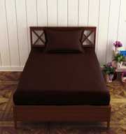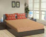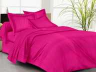 Trance Home Linen Cotton King Fitted (Elastic) 210 TC Striped Bedsheet (Pack of 1, Ferns Coral)