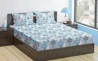 Trance Home Linen Cotton Single Flat 144 TC Printed Bedsheet (Pack of 1, Ferns Paradise Blue)