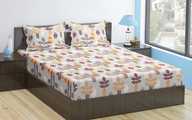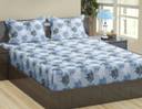 Trance Home Linen Cotton Queen Flat 144 TC Printed Bedsheet (Pack of 1, Ferns Paradise Blue)