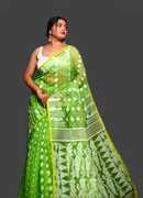 Name: Padmaball dakhai jamdani for girls and women Colour: Green Length:5.5 m Quality:Soft & Comfortable Quantity:1 Blouse : NA
