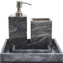 Package Contents: 1 Liquid Soap Dispenser (2.5x6.5 Inches), 1 Soap Tray (5x1.5 Inches), 1 Toothbrush/Paste Holder (3x5 Inches) and 1 Display Tray (8x8x1.5 Inches), Material: Premium Quality Raisin, Finish: Marble