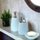 The Transit Story Hand-Painted Liquid Soap Dispenser, Soap Case & Toothbrush Holder Rust-Proof Ceramic Bathroom Set (Pack of 3)