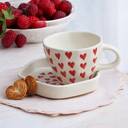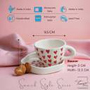 The Transit Story Pack of 2 Ceramic Heart Tea/Coffee cup saucer for Office and Home|Microwave|Dishwasher Safe (White, Red, Multicolor, Cup and Saucer Set)