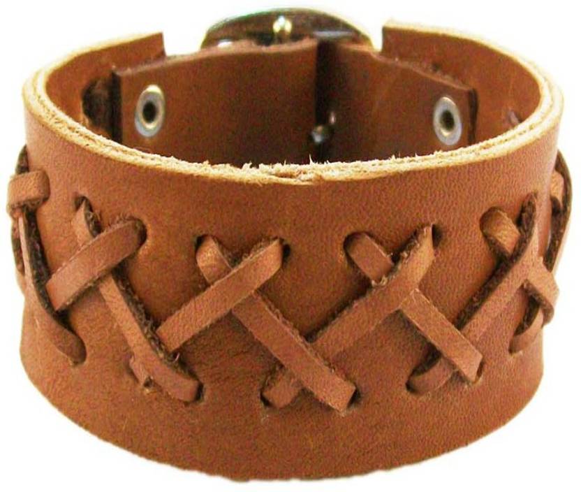 • Material: Genuine Leather, Brass metal stud closer, anti allergic to skin • Style: designer/ casual design, Pary wear with high quality material and latest design • Color: Natural black real leather color with natural texture • Size: Total length of the bracelet is 16.5"(42 cm) width is .35"(1cm.) it comes double wrap with two hole for adjustable size so that it can fit to any wrist size. • Nicely packed in a safety box for extra safety to the product.