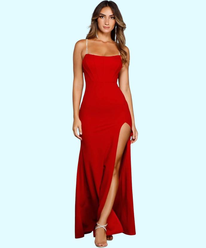 Solid Lycra Blend Stitched Flared/A-line Gown (Red)