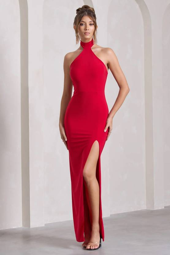 Traquila Women Bodycon Red Maxi/Full Length Dress