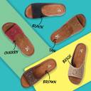 Flaunting an embellished upper pattern, these women’s flat sandals offer a stylish and eye-catching look. The delicate embellishments add a refined touch, elevating the overall appeal while maintaining a simple and elegant feel. The intricate details provide a unique charm, making these sandals a good choice for both casual and semi-formal occasions.