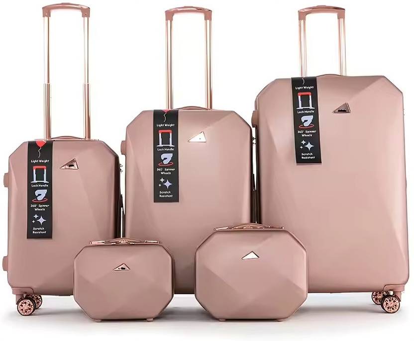 Travelinn Solid Trolley Bag Set of 5|Anti-Theft Zip|8W Trolley|Number Lock Expandable Cabin & Check-in Set 8 Wheels - 28 inch