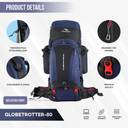 Globetrotter 80L internal frame backpack detachable daypack travel