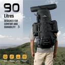 TRAWOC 90 Liter backpack is a club mix of safety, durability, looks, and functions. This trekking rucksack comes with excess storage capacity and weight-bearing capacity too. Also, it's air padded straps smartly divides the weight pressure on the back and hip portions. It is been made through lightweight material which is water-resistant, breathable and can get adjusted in multiple areas. The 3-year warranty is the icing on the cake