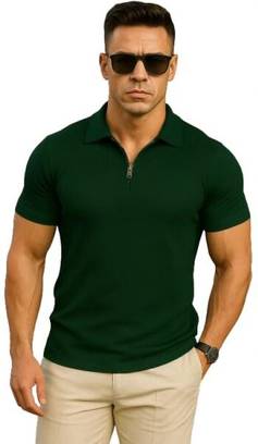 Men Solid Zip Neck Polycotton Green T-Shirt