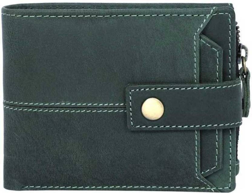 rfid green men's casual formal trendy multizipper genuine leather wallet