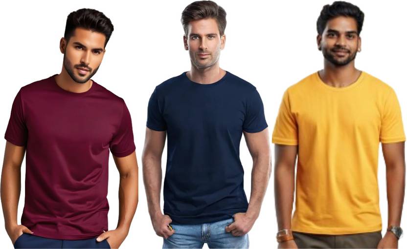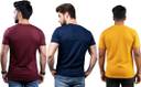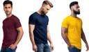 TREKKER Pack of 3 Men Solid Round Neck Pure Cotton Maroon, Navy Blue, Yellow T-Shirt