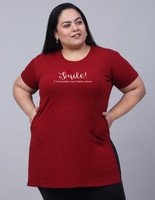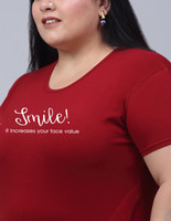 Trend Level Graphic Print Women Round Neck Maroon T-Shirt
