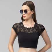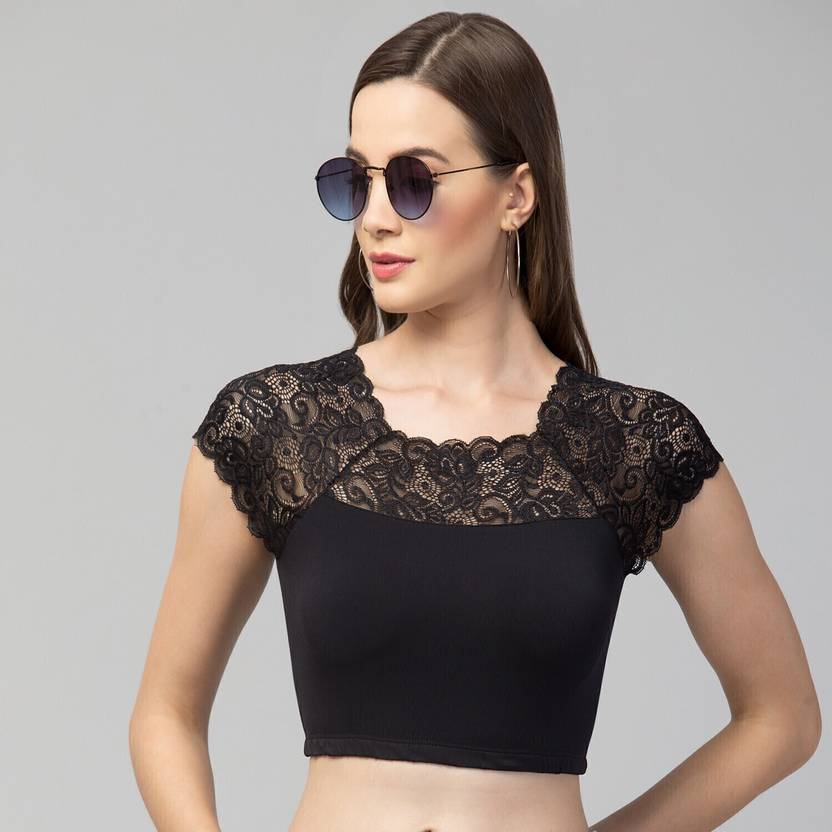 Trend Level Lace Blouse It gives perfect fitting with elegance look. This is a readyment stitched ready to wear blouse for any occasion. Premium quality 4 way stretch fabric. Material : Cotton Lycra Blend Sleeve fabric : Net Neck style :Round Neck