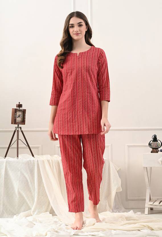 TREND ME Women Printed Maroon Night Suit Set